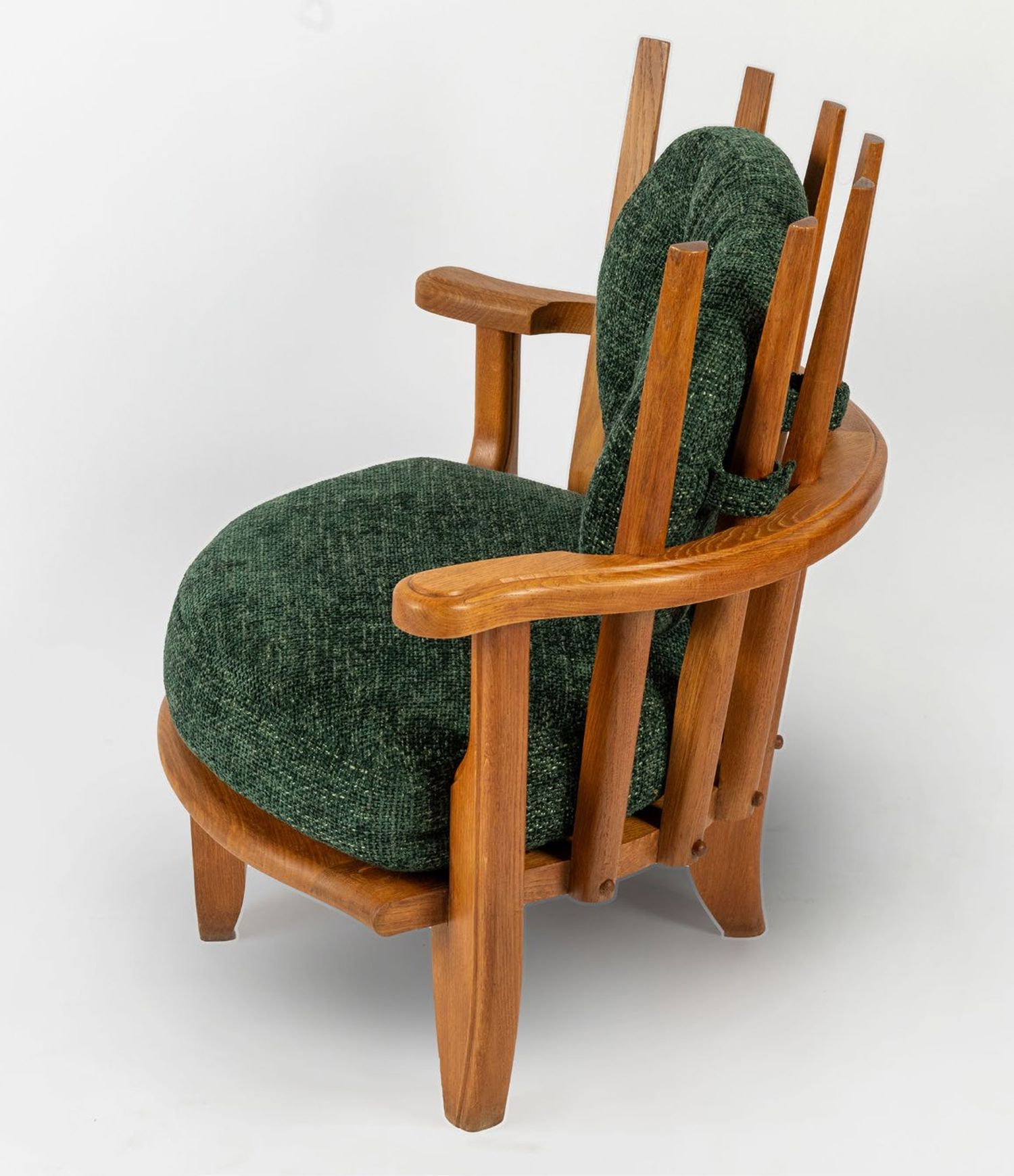 Pair of lounge chairs in waxed oak with openwork sheaf-form backs